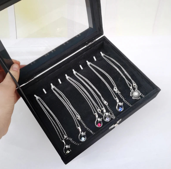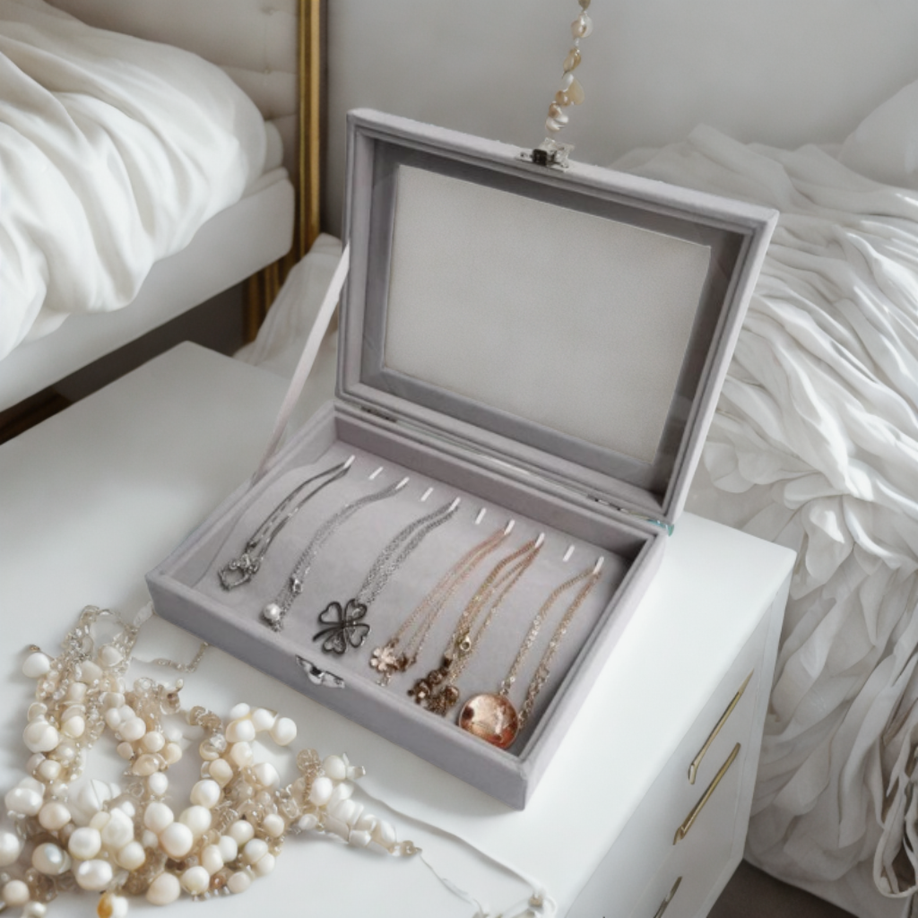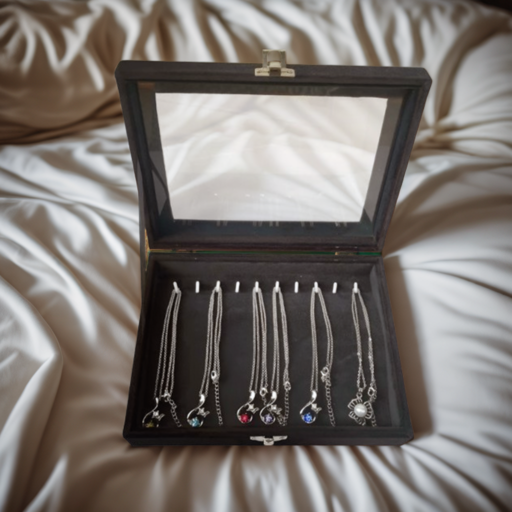 L'intérieur de notre coffret a été étudié pour accueillir vos précieux colliers, la fermeture garantie une sécurité optimale.