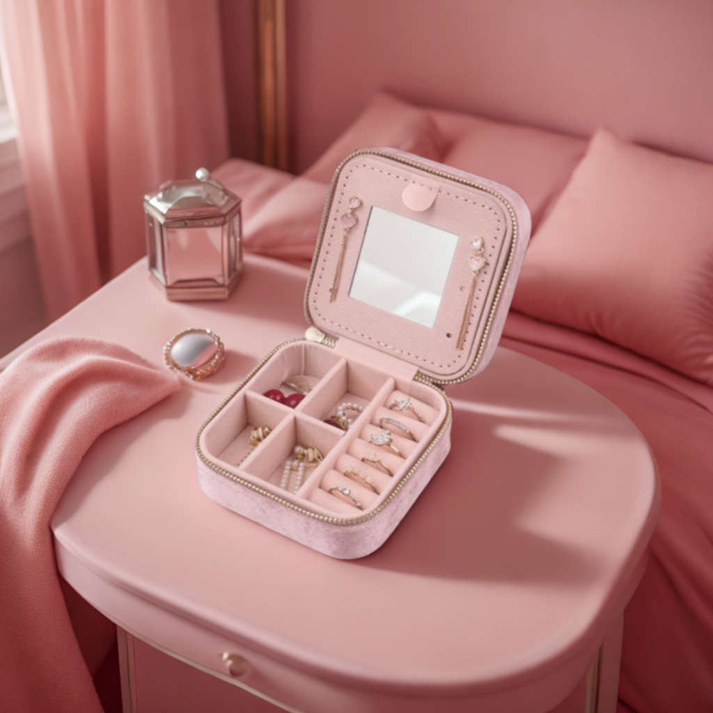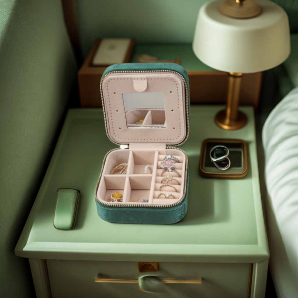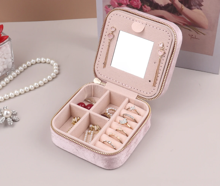 Glissez l’élégance dans votre sac à main avec notre boîte à bijoux de voyage avec miroir.