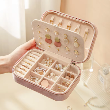 Avec son style chic et bohème et son format compact, notre boîte à bijoux en velours trouvera facilement sa place dans vos sacs à mains et vos salles de bains...
