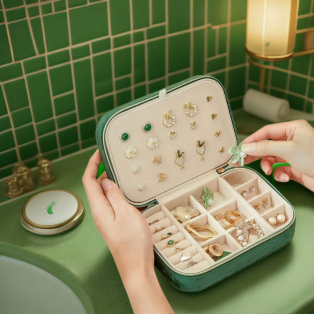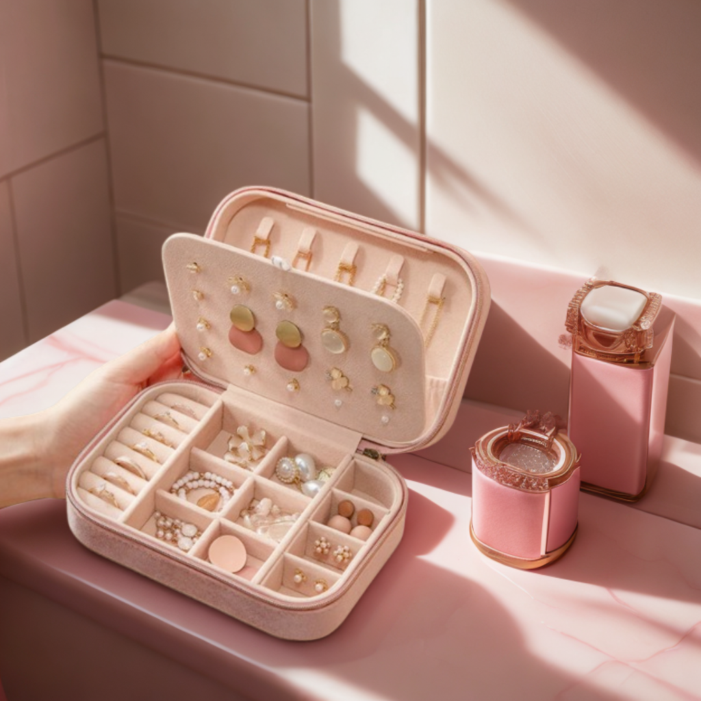 Nos boîtes de voyage sont compactes et légères, parfaites pour se glisser dans une valise ou un sac tout en offrant suffisamment de place pour organiser vos bijoux essentiels.