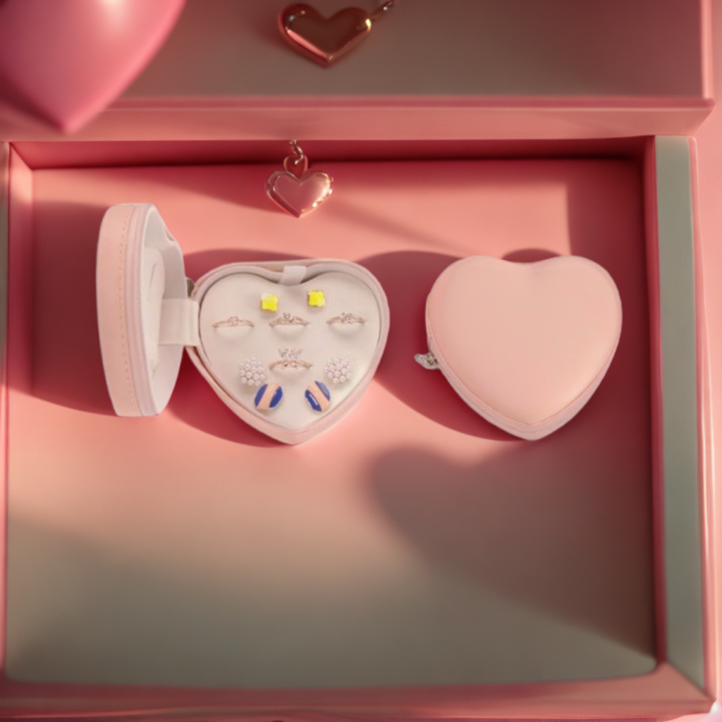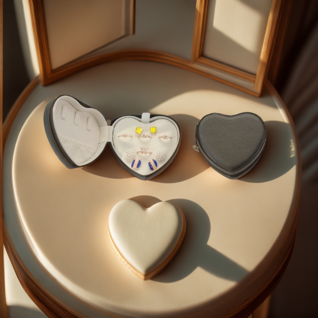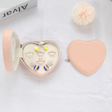 Adoptez l'élégance minimaliste avec notre boîte à bijoux en forme de cœur, conçue pour vos escapades.