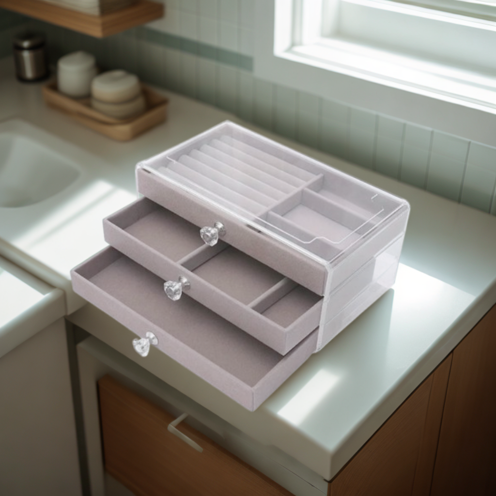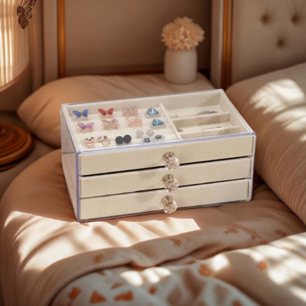 Grâce à son socle transparent, notre boite à bijoux vous permet de contempler paisiblement vos bijoux au quotidien.