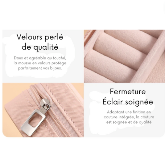 Élégante et discrète, cette boîte à bijoux est équipée d'une fermeture Éclair de qualité, permettant une utilisation robuste sur le long terme.