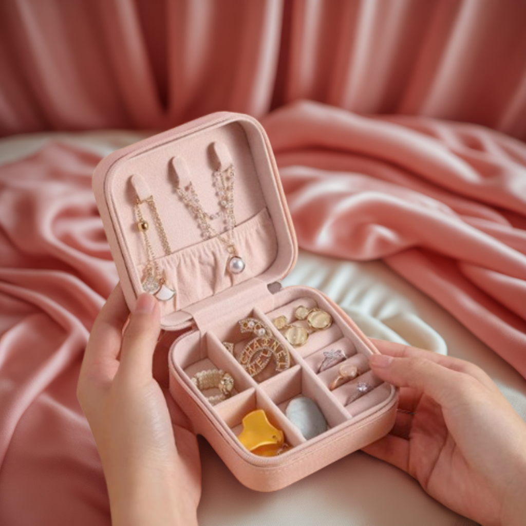 Idéal pour les femmes dynamiques qui souhaitent conserver leurs bijoux dans un sac à main, cet accessoire compact est indispensable pour voyager léger tout en restant chic.