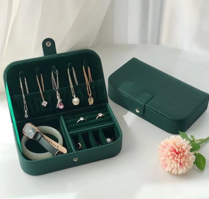 Nos boîtes de voyage sont compactes et légères, parfaites pour se glisser dans une valise ou un sac tout en offrant suffisamment de place pour organiser vos bijoux essentiels.